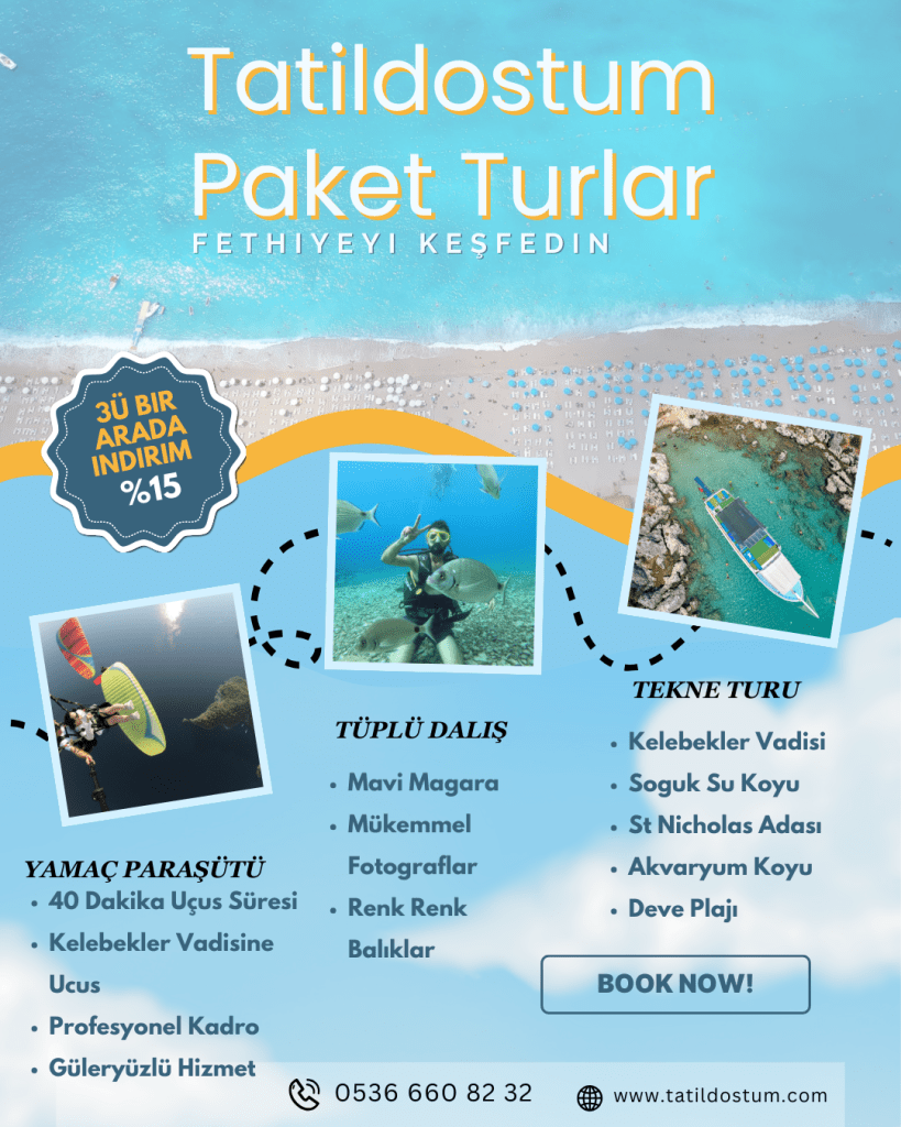 Fethiye'de tatil arkadaşımla yaptığımız yamaç paraşütü ve tüplü dalış unutulmazdı.