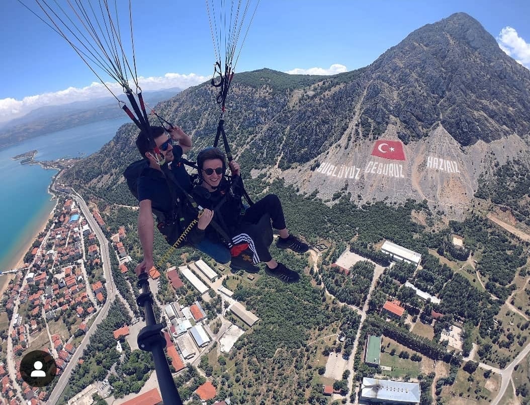 Eğirdir’in 7 renkli manzarasında Eğirdir adasının üzerinde uçabilir. Askeri okul üzerinde bulunan Güçlüyüz Cesuruz Hazırız Yazısı ile fotoğraf çekinebilirsiniz. Her yaştan insanın katılabileceği bu aktivitede bazı yamaç paraşütü kuralları bulunmaktadır.