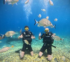 Couples and groups can dive together, take photos side by side and feed the fish in our underwater fish farm. You can explore natural formation rocks and sea creatures. If you are very lucky, you may have the chance to see the loggerhead turtles, a species that is endangered in our region.